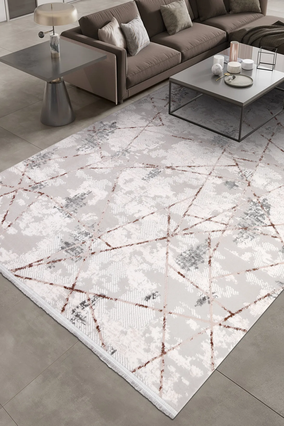 FİLORA-Krem/Kahve - Özel Ölçü-Salon, Oturma Odası ve Koridor Halısı-Robot Süpürgeye Uyumlu-Kolay Temizlenebilir-Uygun Fiyat