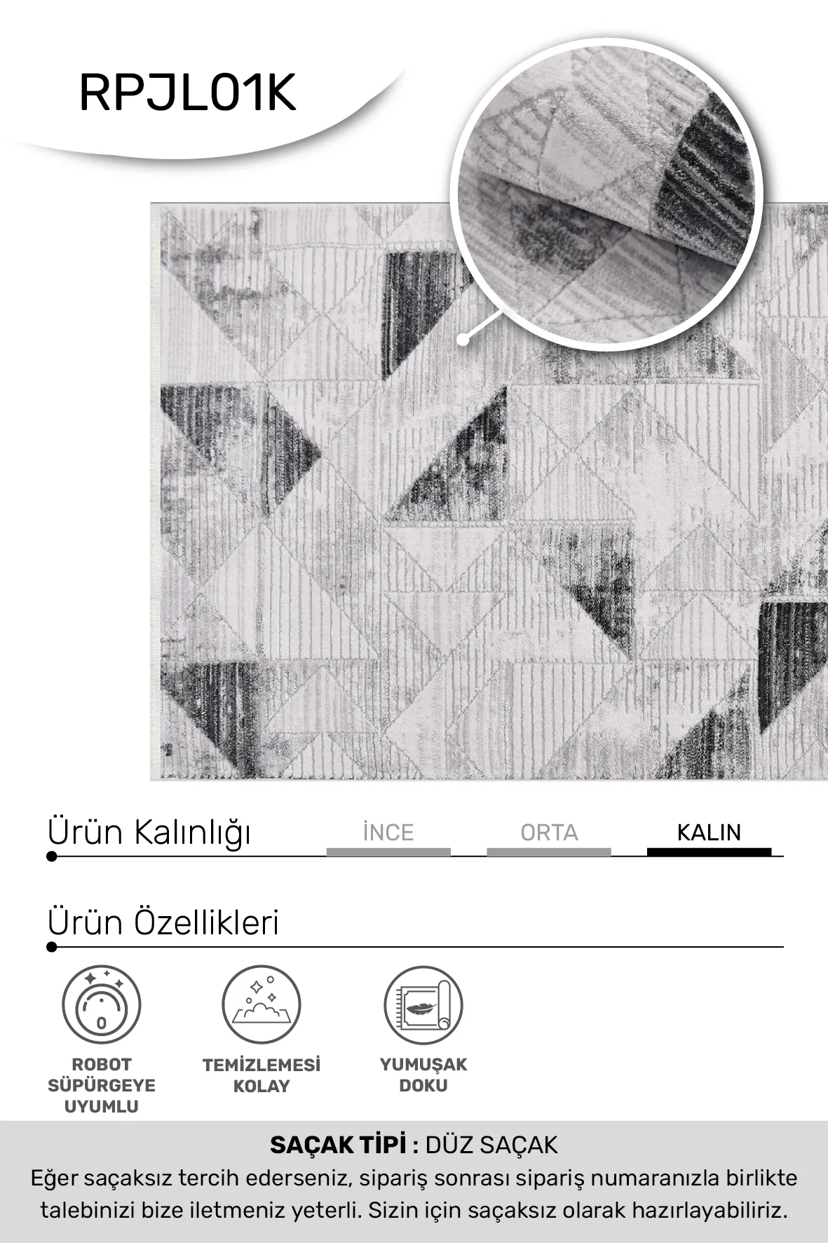 JALURA-Gri/Siyah- Özel Ölçü-Salon,Oturma Odası, Koridor Halısı-Robot Süpürgeye Uyumlu-Kolay Temizlenebilir-Uygun Fiyat