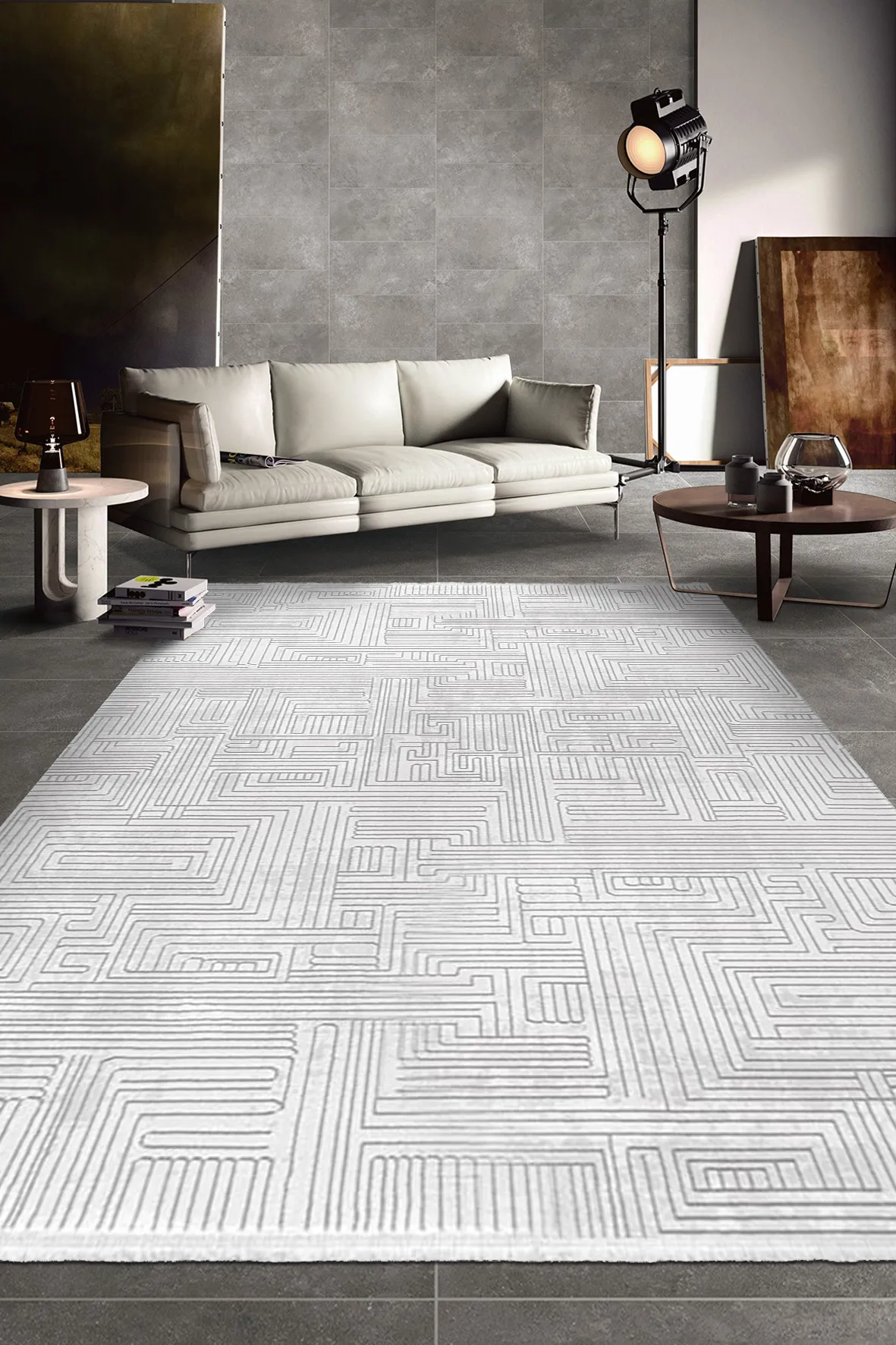 MACCA-Beyaz/Gri- Özel Ölçü-Salon,Oturma Odası ve Koridor Halısı-Robot Süpürgeye Uyumlu-Kolay Temizlenebilir-Uygun Fiyat