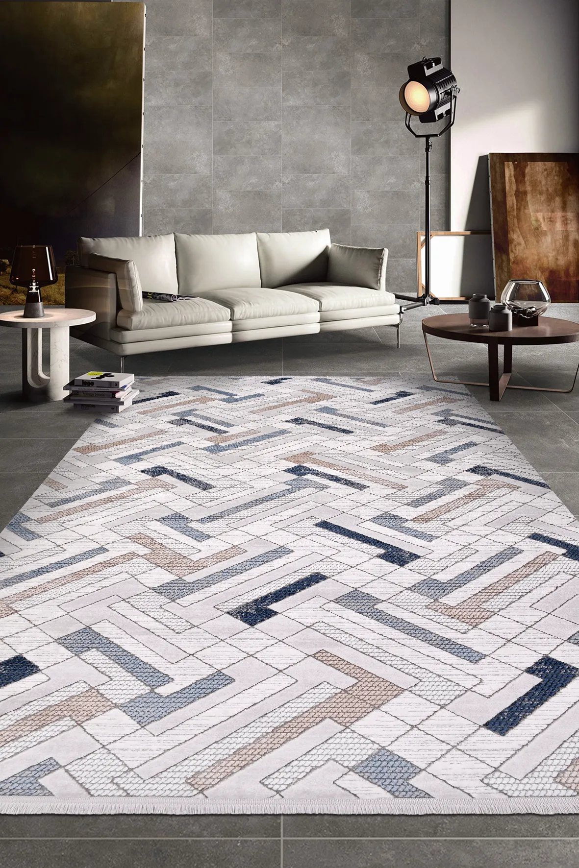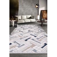 MACCA-Krem/Mavi/Kahve - Özel Ölçü-Salon,Oturma Odası ve Koridor Halısı-Robot Süpürgeye Uyumlu-Kolay Temizlenebilir-Uygun Fiyat