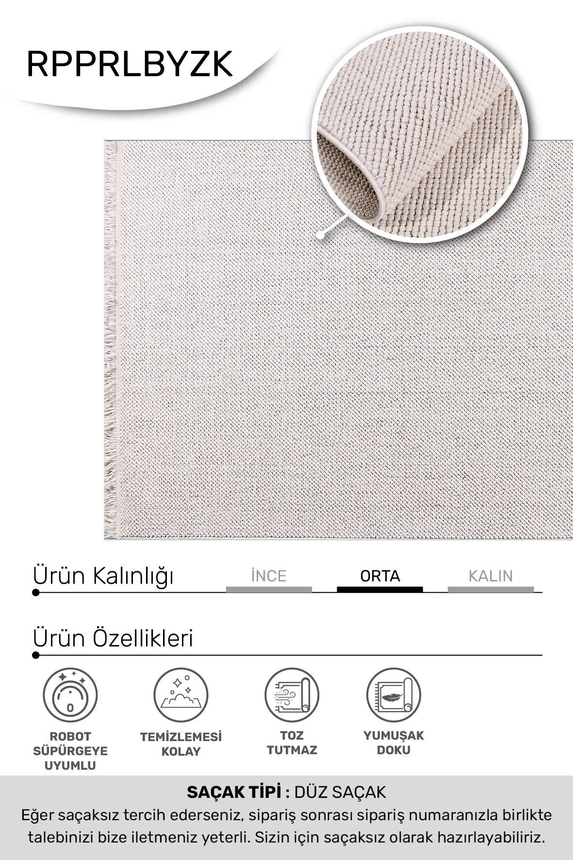 PARLA-Beyaz- Özel Ölçü- Oturma Odası, Koridor, Yatak Odası Halısı- Robot Süpürgeye Uyumlu-Kolay Temizlenebilir- Uygun Fiyat