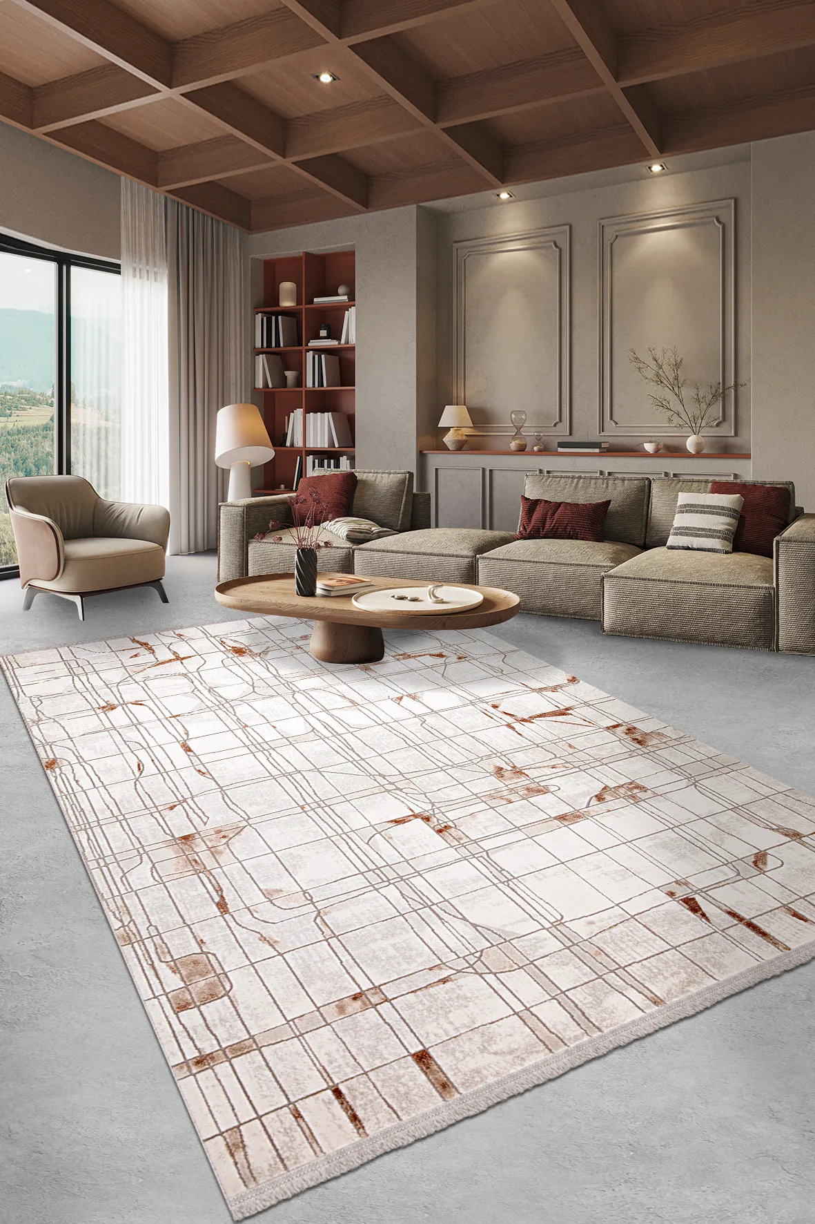 VALORİA-Bej/Kahve- Özel Ölçü-Salon,Oturma Odası ve Koridor Halısı-Robot Süpürgeye Uyumlu-Kolay Temizlenebilir-Uygun Fiyat