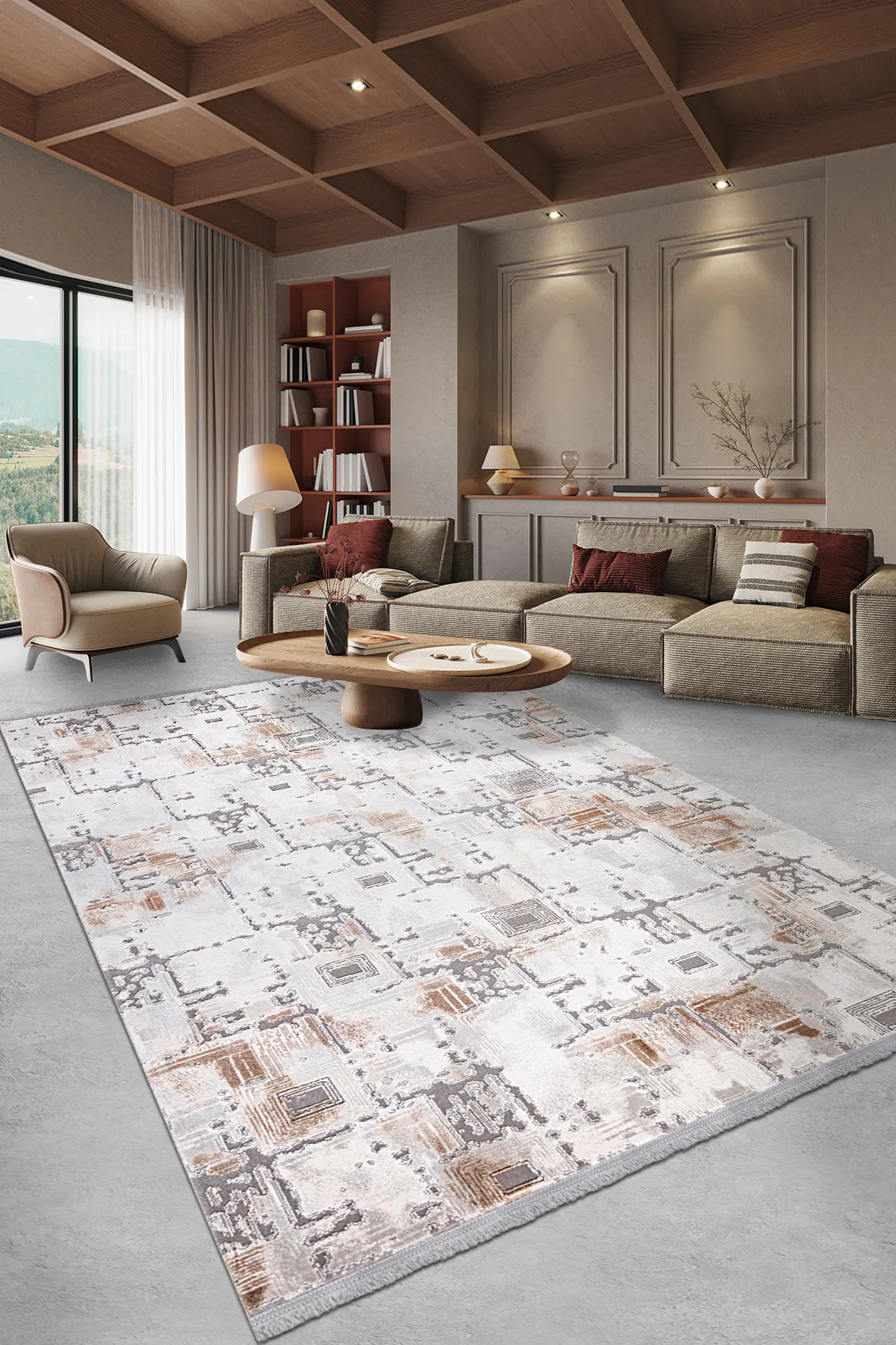 VALORİA-Krem/Kahve - Özel Ölçü-Salon,Oturma Odası ve Koridor Halısı-Robot Süpürgeye Uyumlu-Kolay Temizlenebilir-Uygun Fiyat